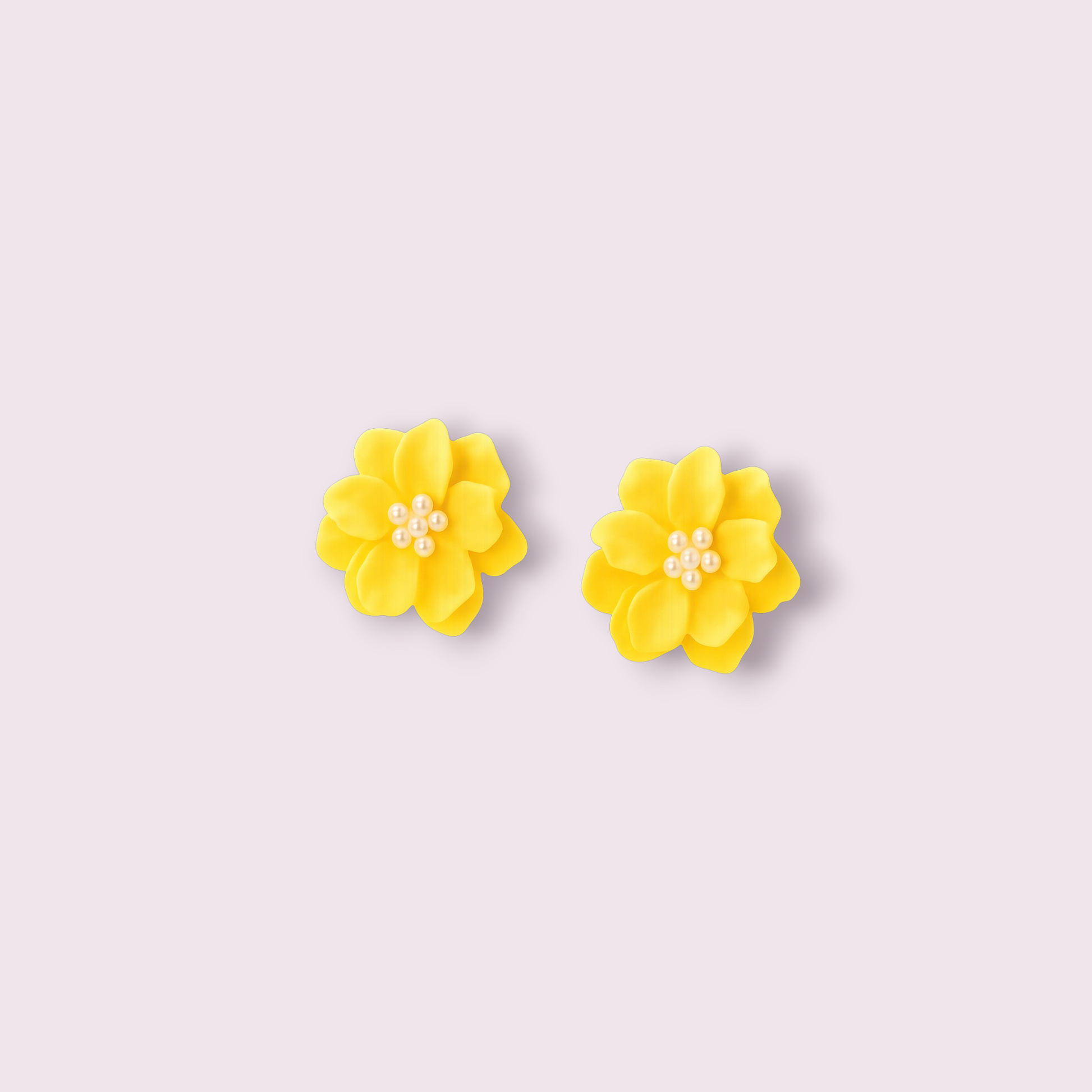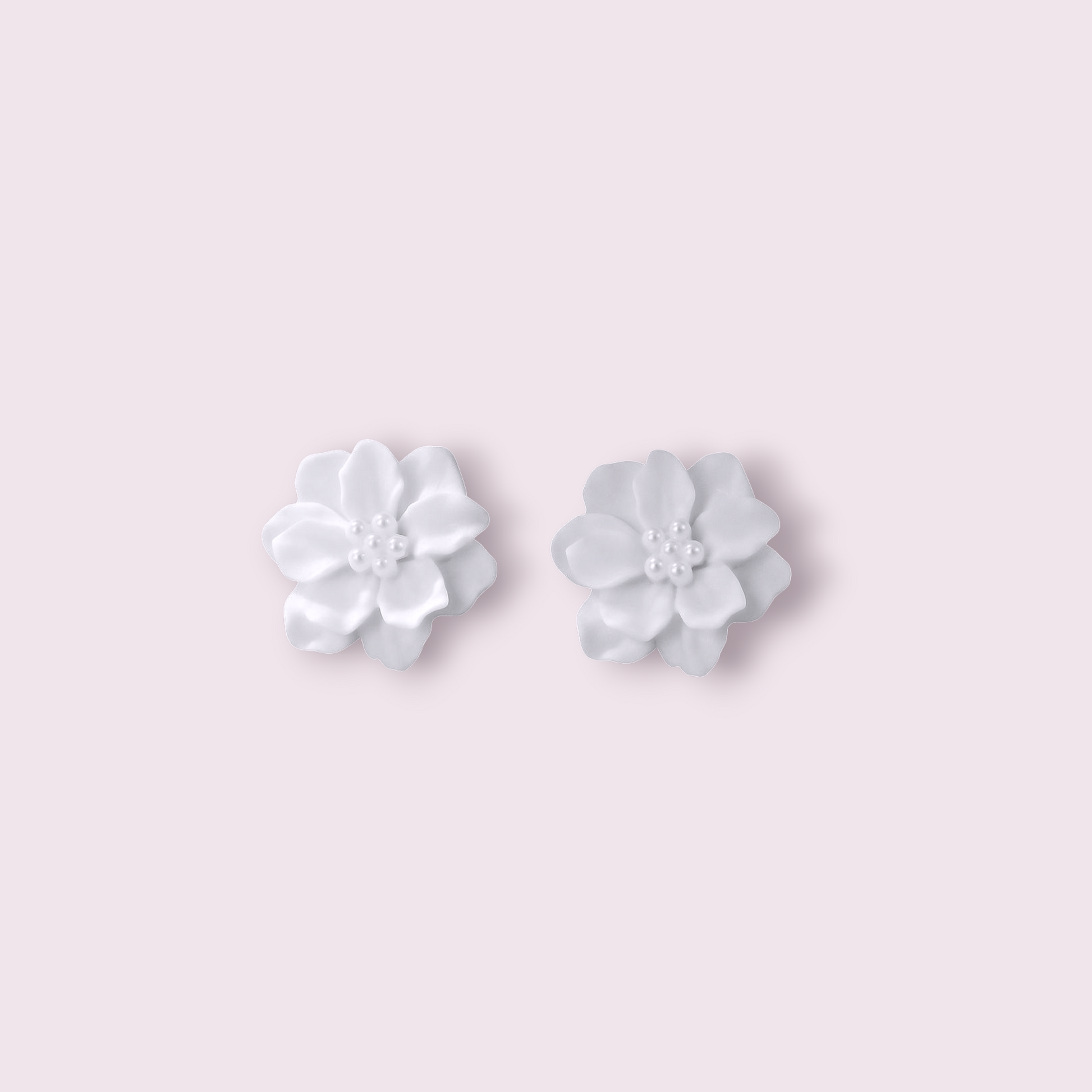 Cercei realizați manual din lut polimeric, ușori și eleganți, inspirați de frumusețea naturii. Detalii fine în forme de flori, cu prindere argint S925. Perfecți pentru orice ocazie.