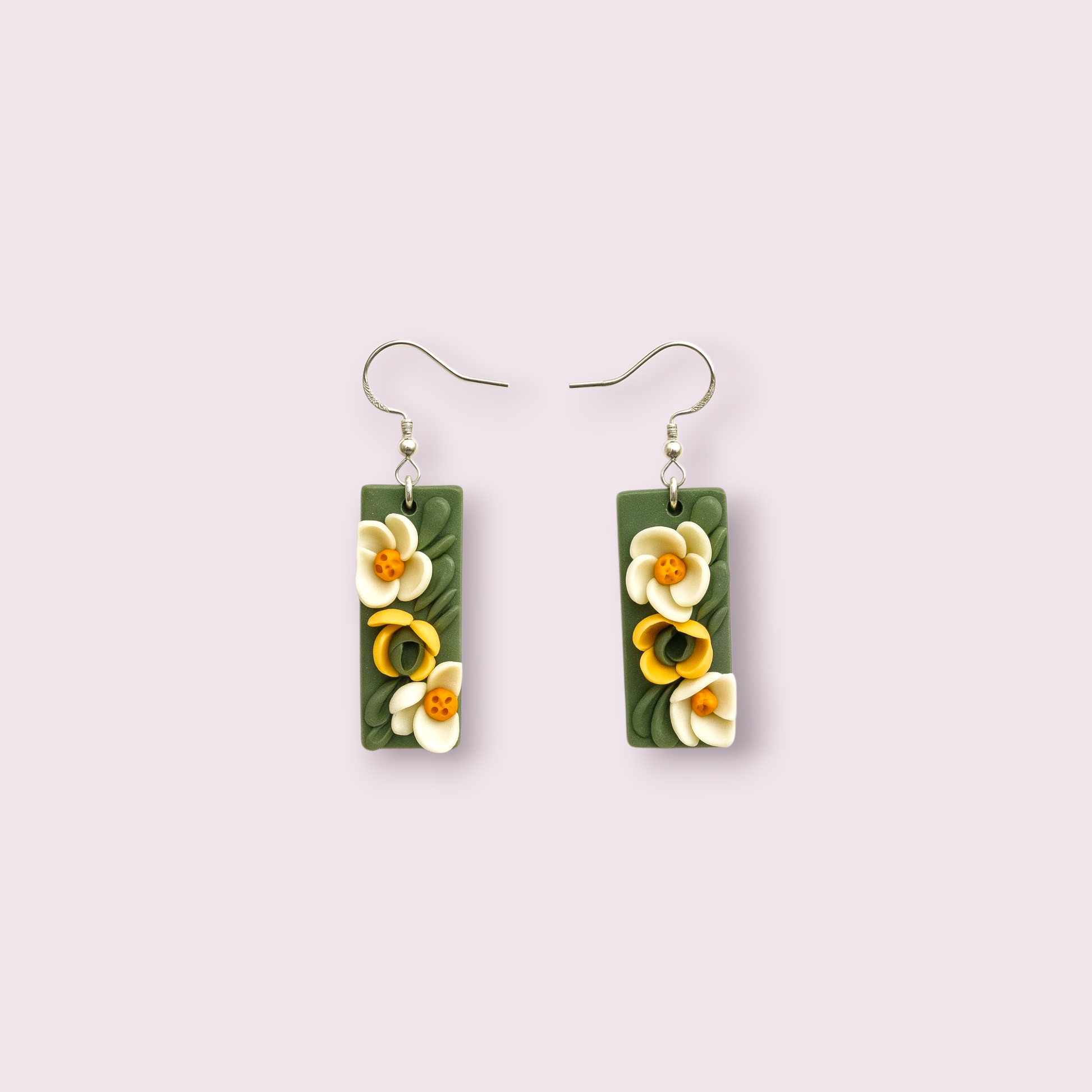 Cercei realizați manual din lut polimeric, ușori și eleganți, inspirați de frumusețea naturii. Detalii fine în forme de flori, cu prindere argint S925.