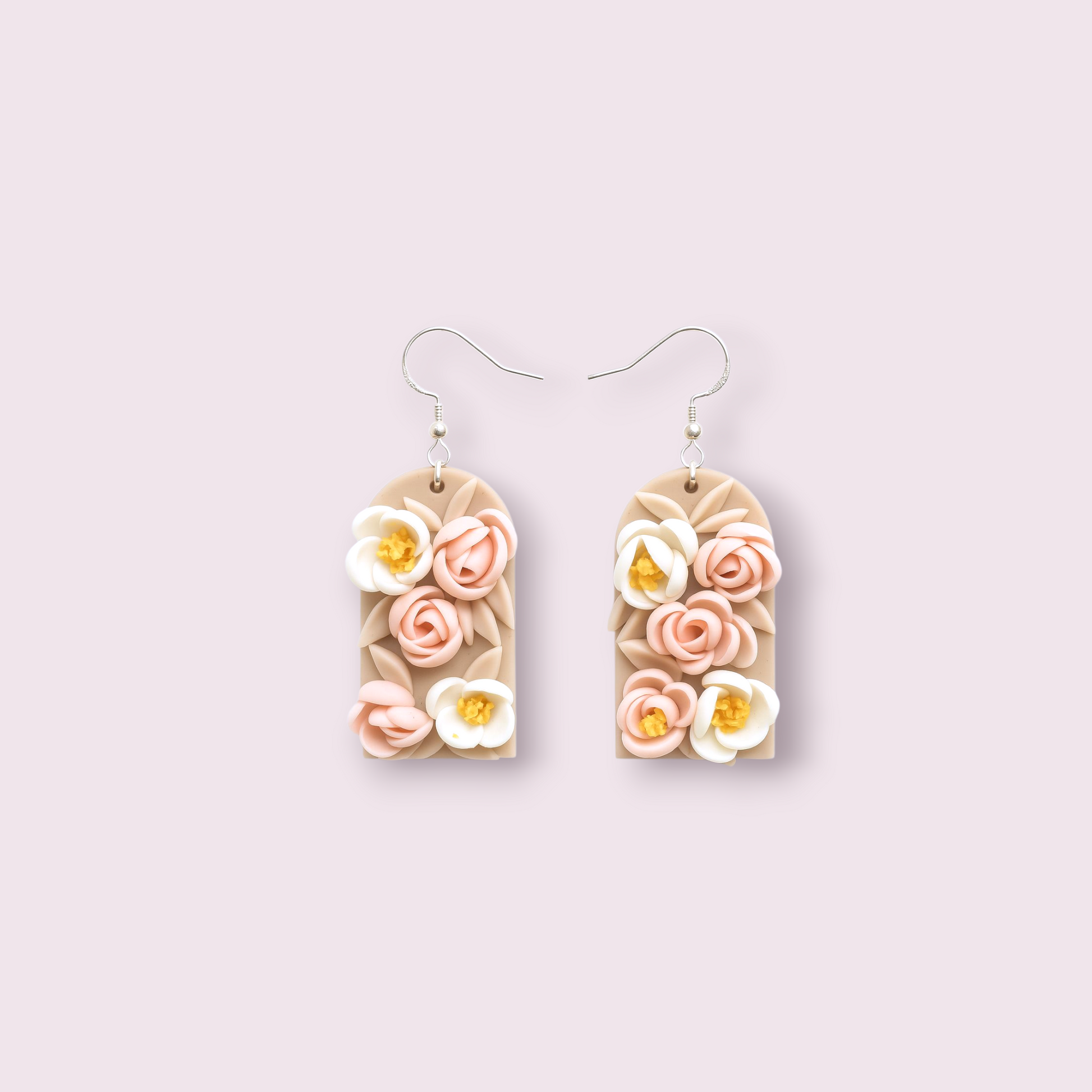 Cercei realizați manual din lut polimeric, ușori și eleganți, inspirați de frumusețea naturii. Detalii fine în forme de flori, cu prindere argint S925.