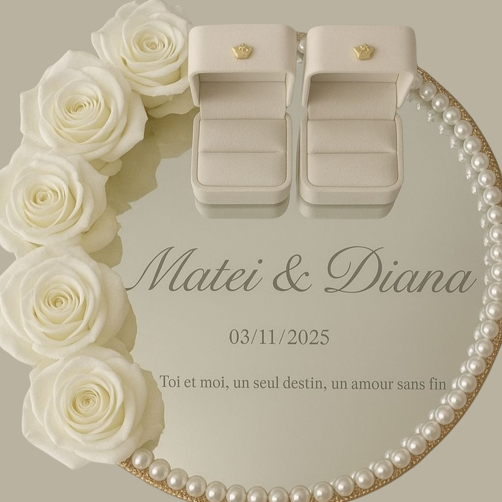 Transformă ziua nunții într-un moment de neuitat cu această tavă oglindă elegantă și rafinată, perfectă pentru ceremonia cununiei religioase sau civile.