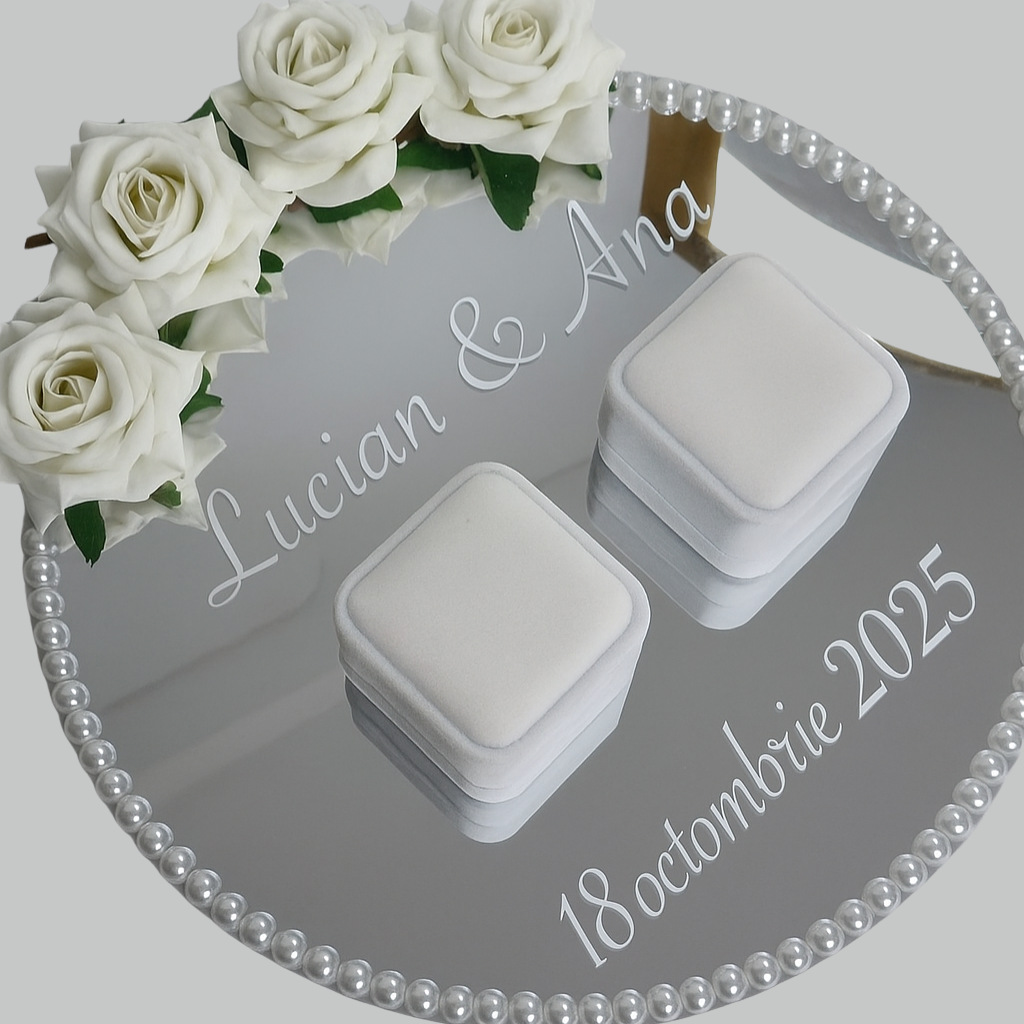 Transformă ziua nunții într-un moment de neuitat cu această tavă oglindă elegantă și rafinată, perfectă pentru ceremonia cununiei religioase sau civile.